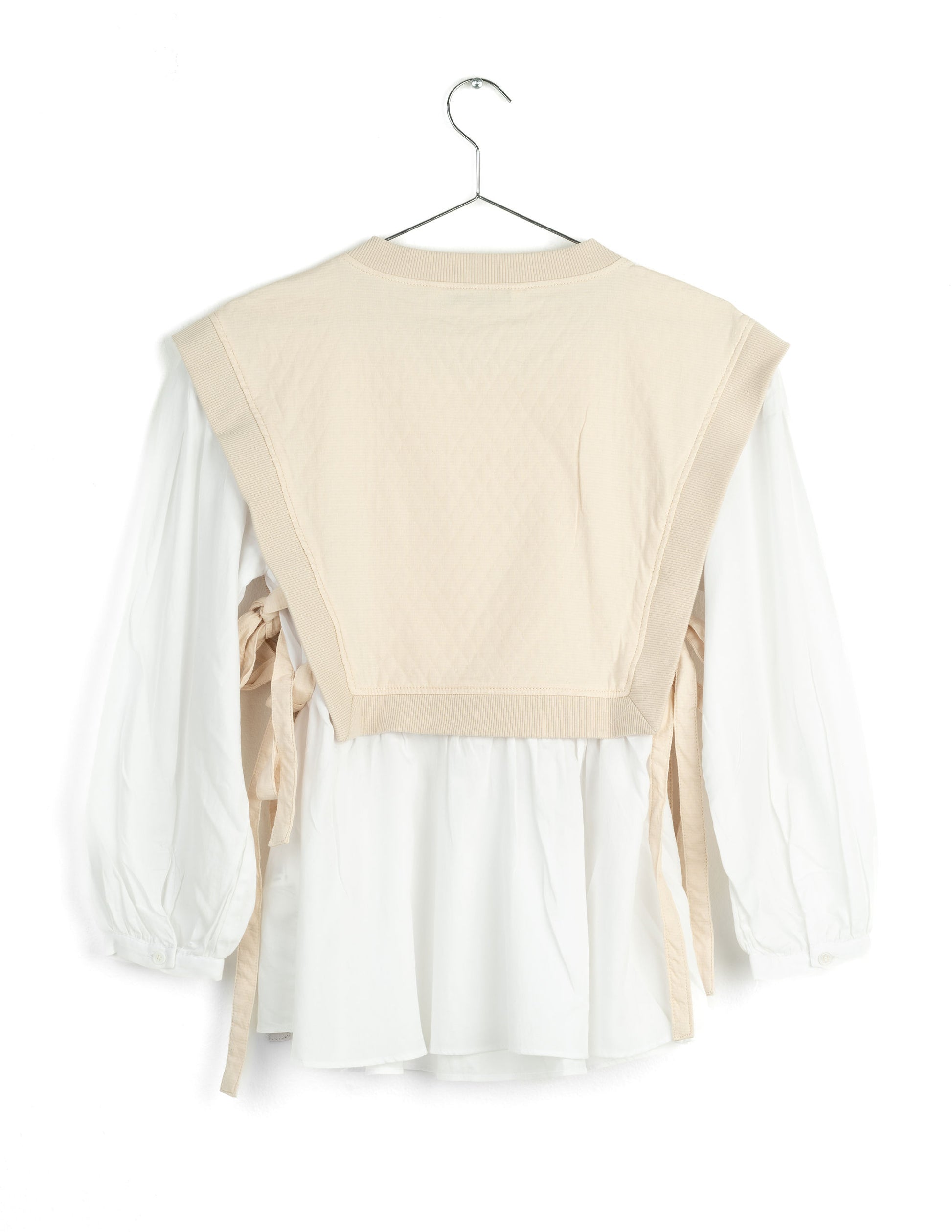 Vit långärmad kombinerad skjorta med rund hals med tvådelad stickad väst/skjorta i beige. Varan är i bra skick. Storlek XS men kan även passa de som har storlek S eller M.